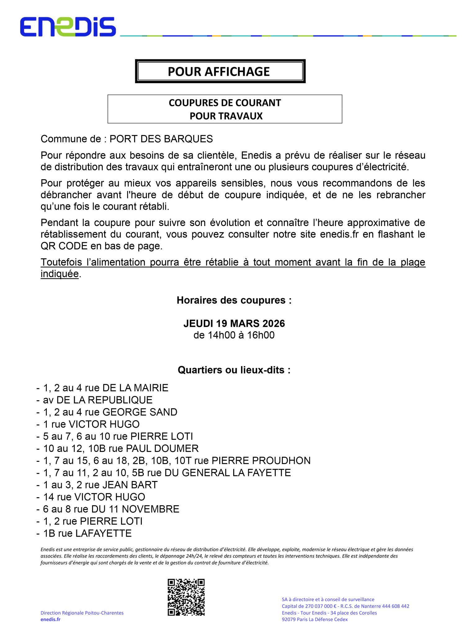 Coupures de courant - 19/03